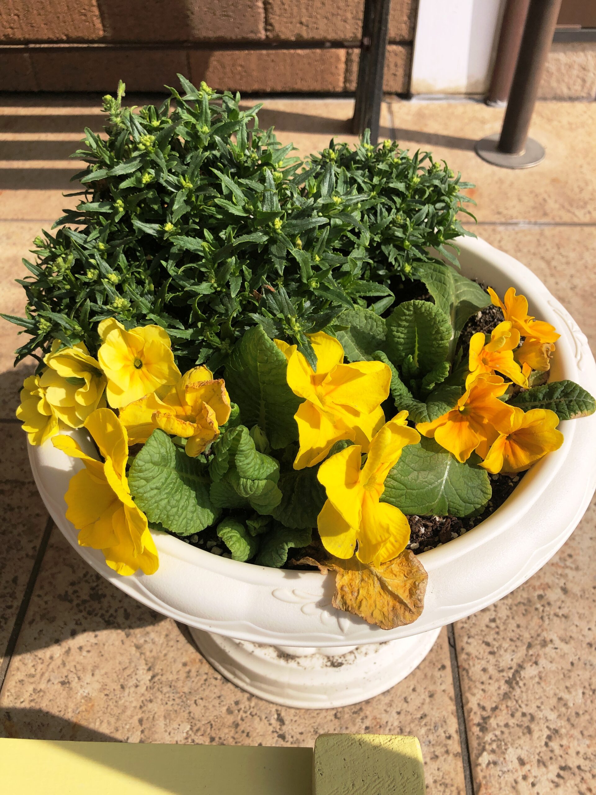 ここ数日関東地方では菜種梅雨と言うのですか、季節外れの冷たい雨や雪が降っています。せっかく元気に咲いていた花達が辛そうです。今回は先月の暖かかった日の寄せ植えの様子をご紹介致します!