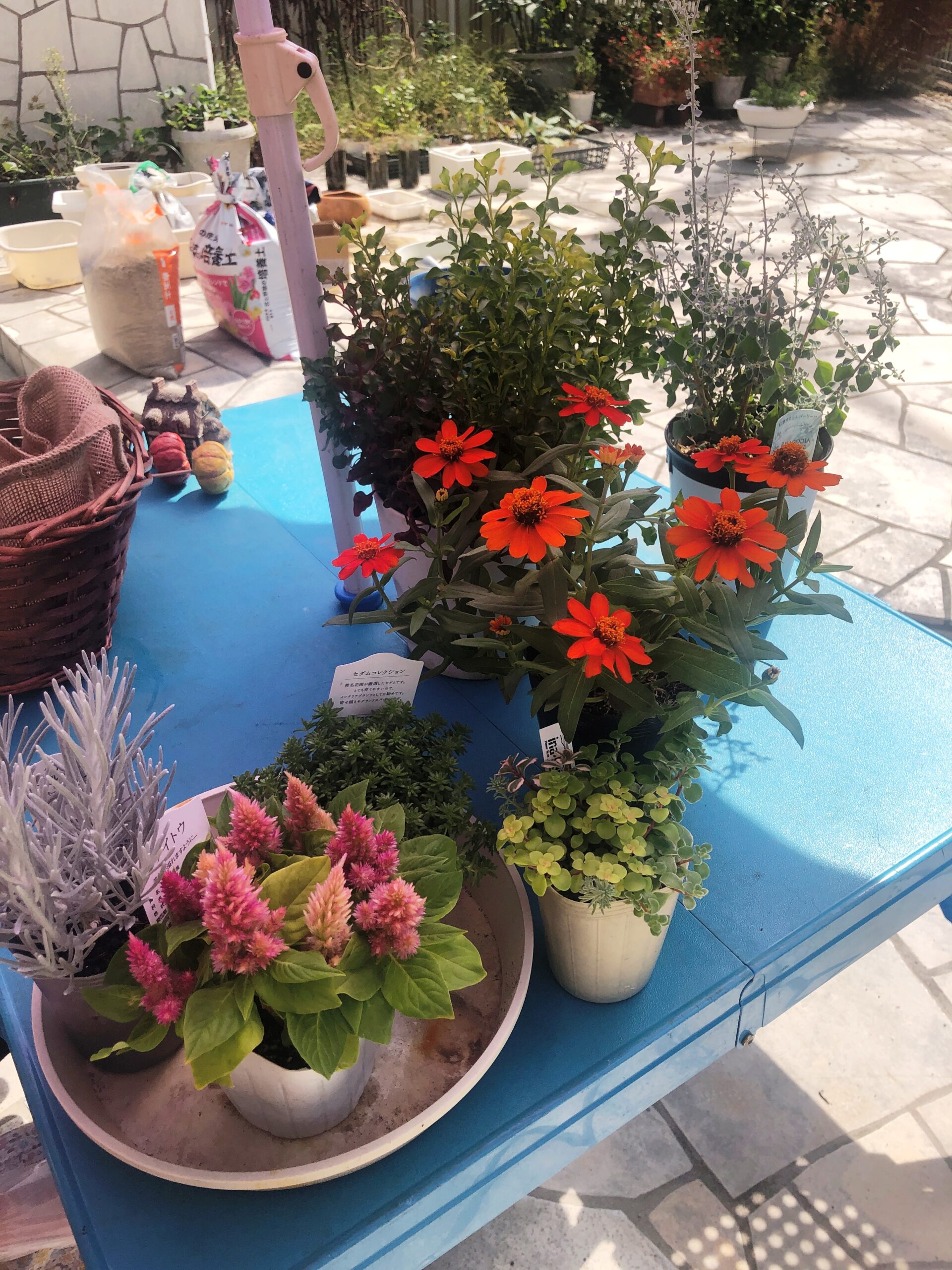 ここ数日、暑さもやわらぎ庭の手入れがしやすくなってきました。春先と今の時期は、日本列島の北と南で大きく気候が違いますね!皆様のお住まいの地域は北と南のどちらでしょうか?北海道では雪が降り、南の地方ではまだ夏日の所もあるようです。ここ神奈川県では夜の冷え込みが少し強くなってきたので、プルメリアはぼちぼち室内に避難させた方が良さそうです!先日ハロウィン用の寄せ植えと、多肉植物の寄せ植えが徒長してきたので植え替えてみました!