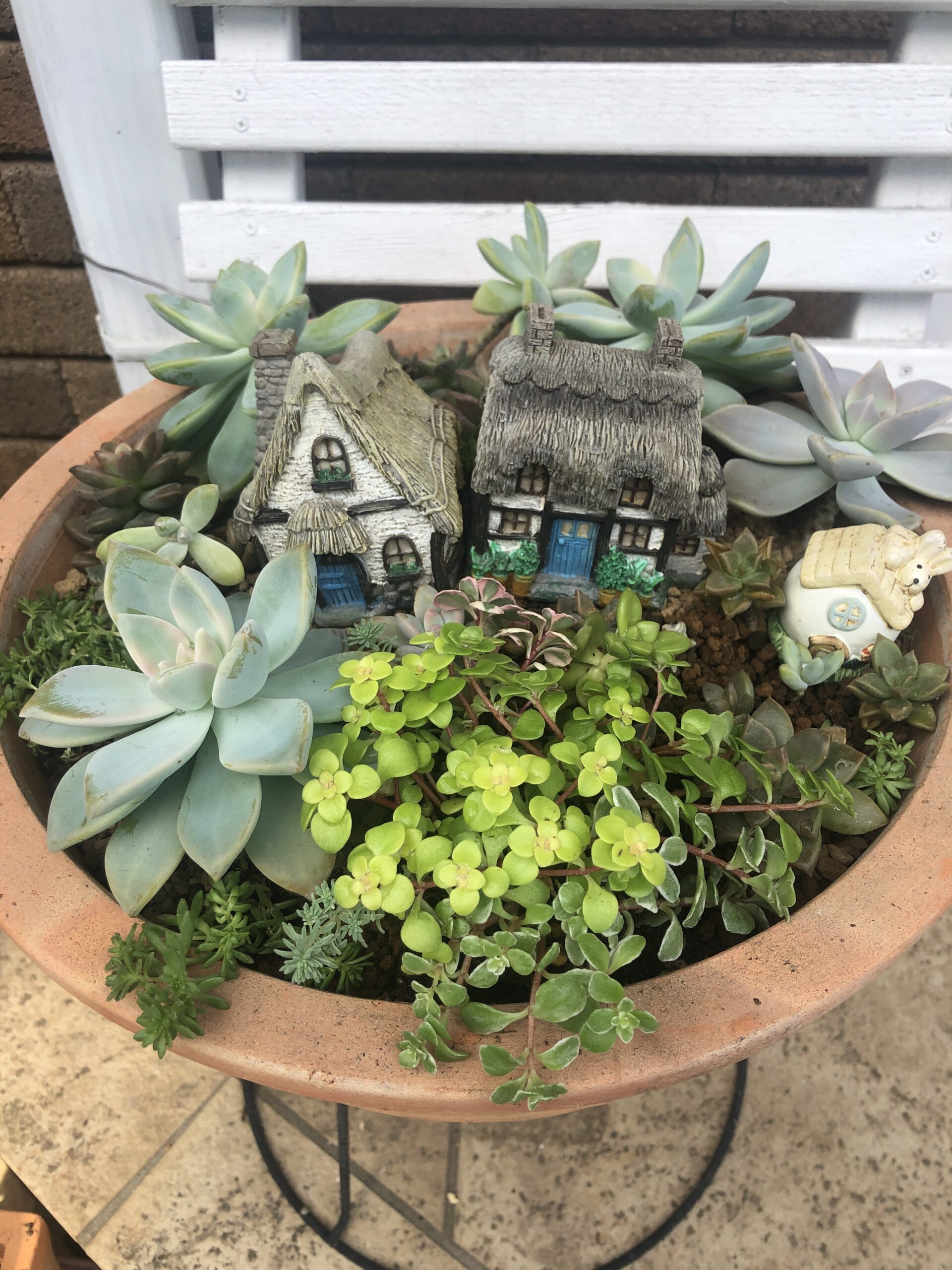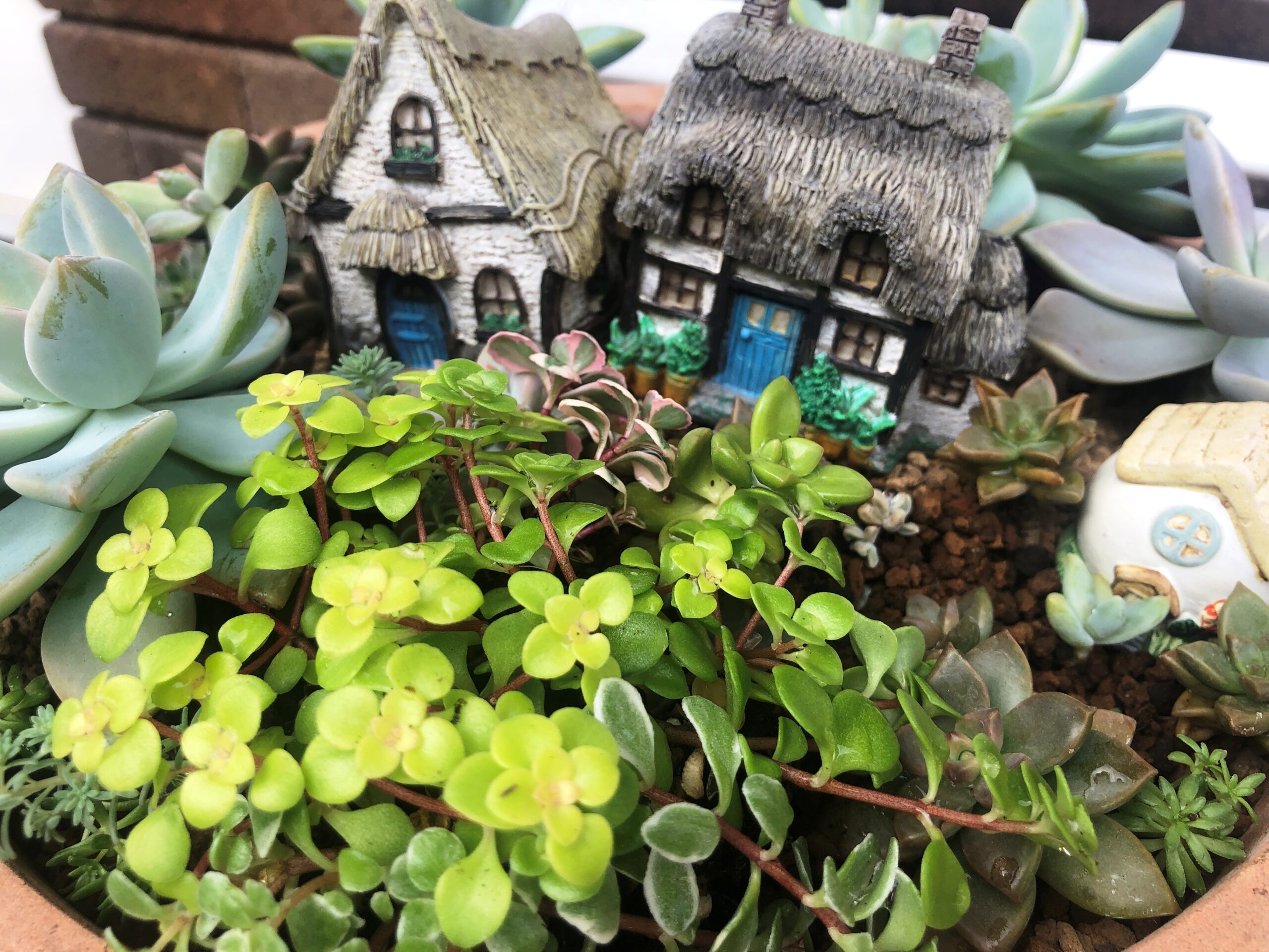 今回は家のオブジェを置いてみました。少し新しい種類(セダム系)も買いたしてみました!