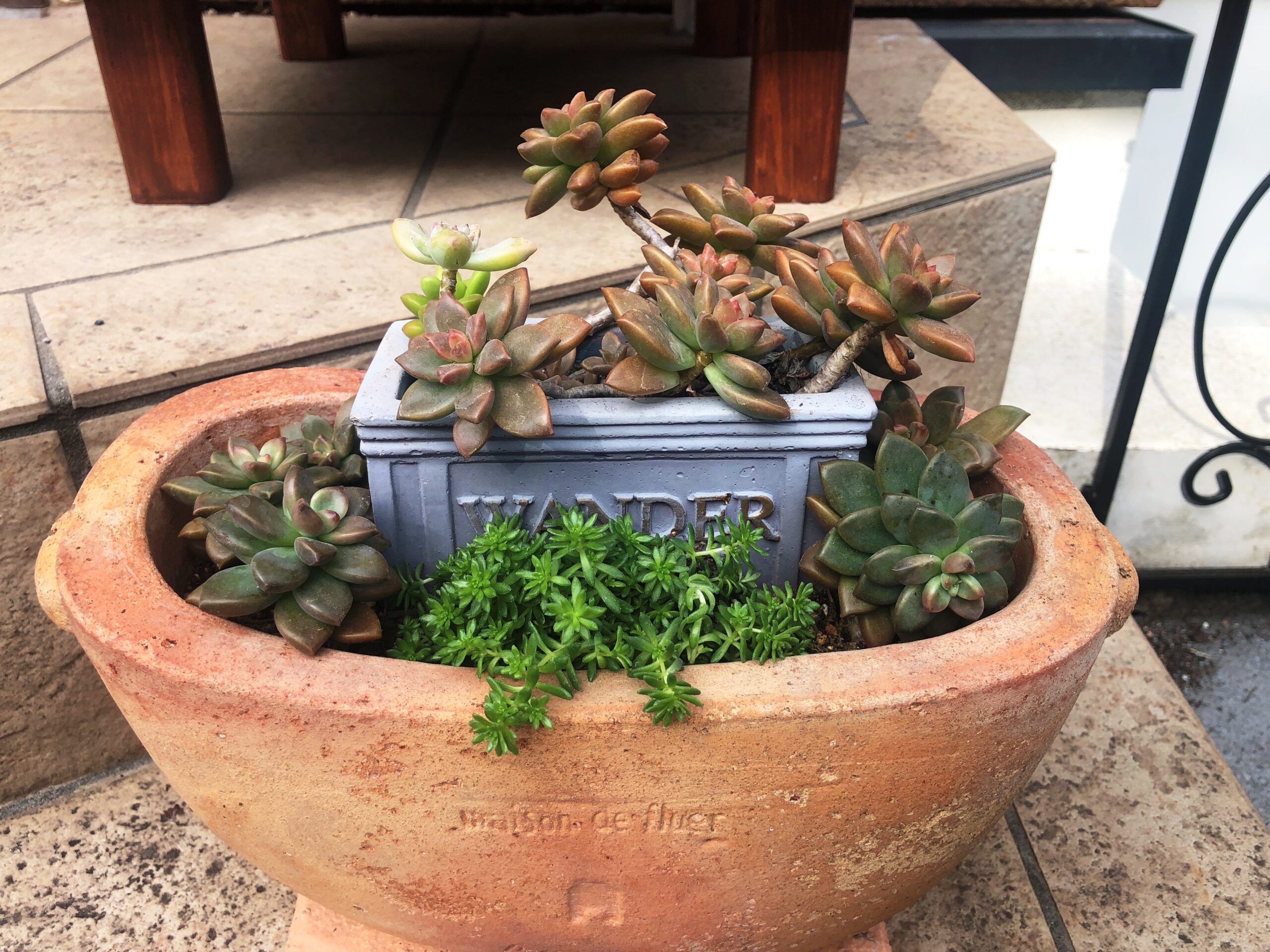 大きくなり過ぎたセダムを中心に、もう一鉢寄せ植えを作ってみました!