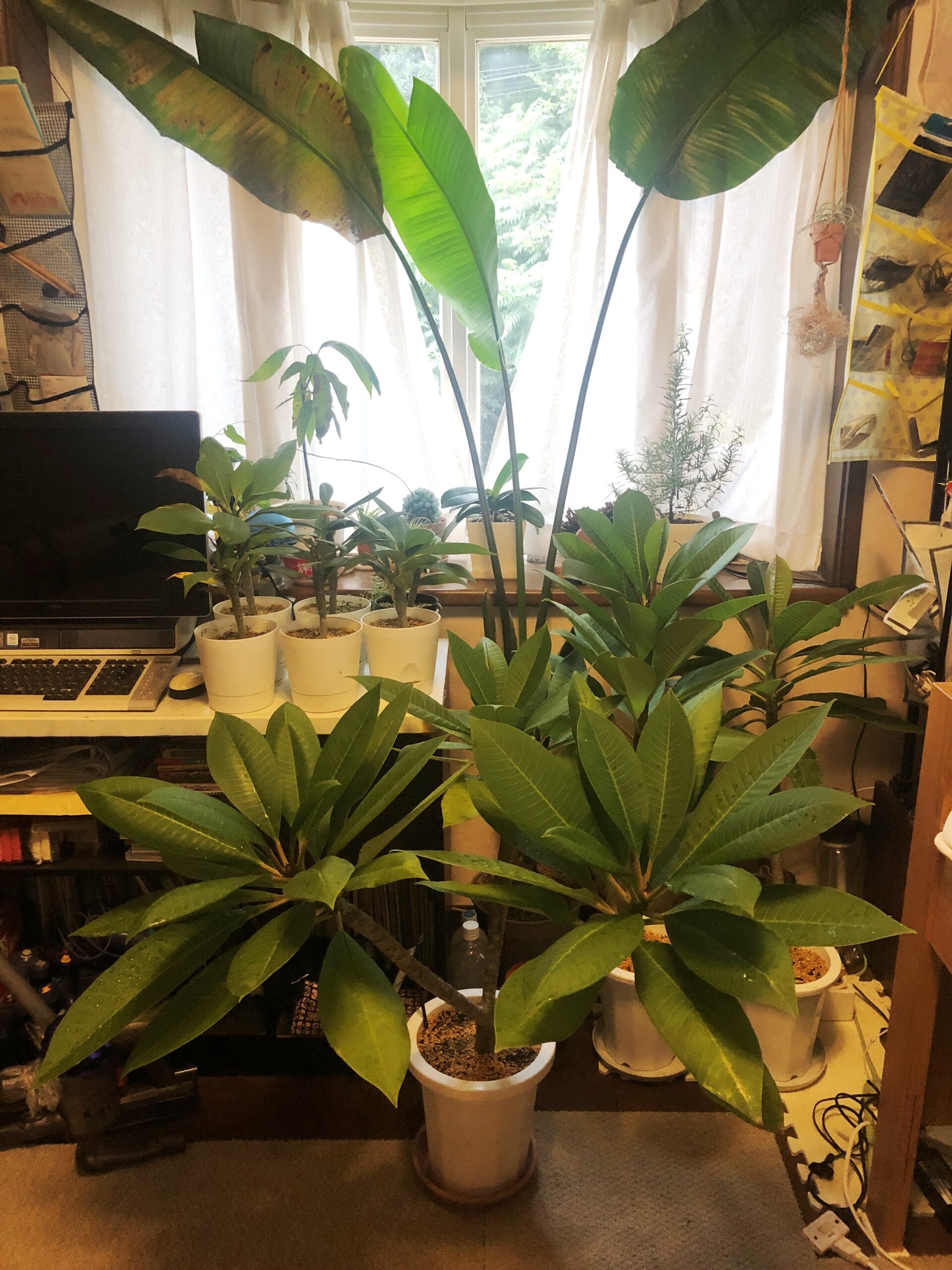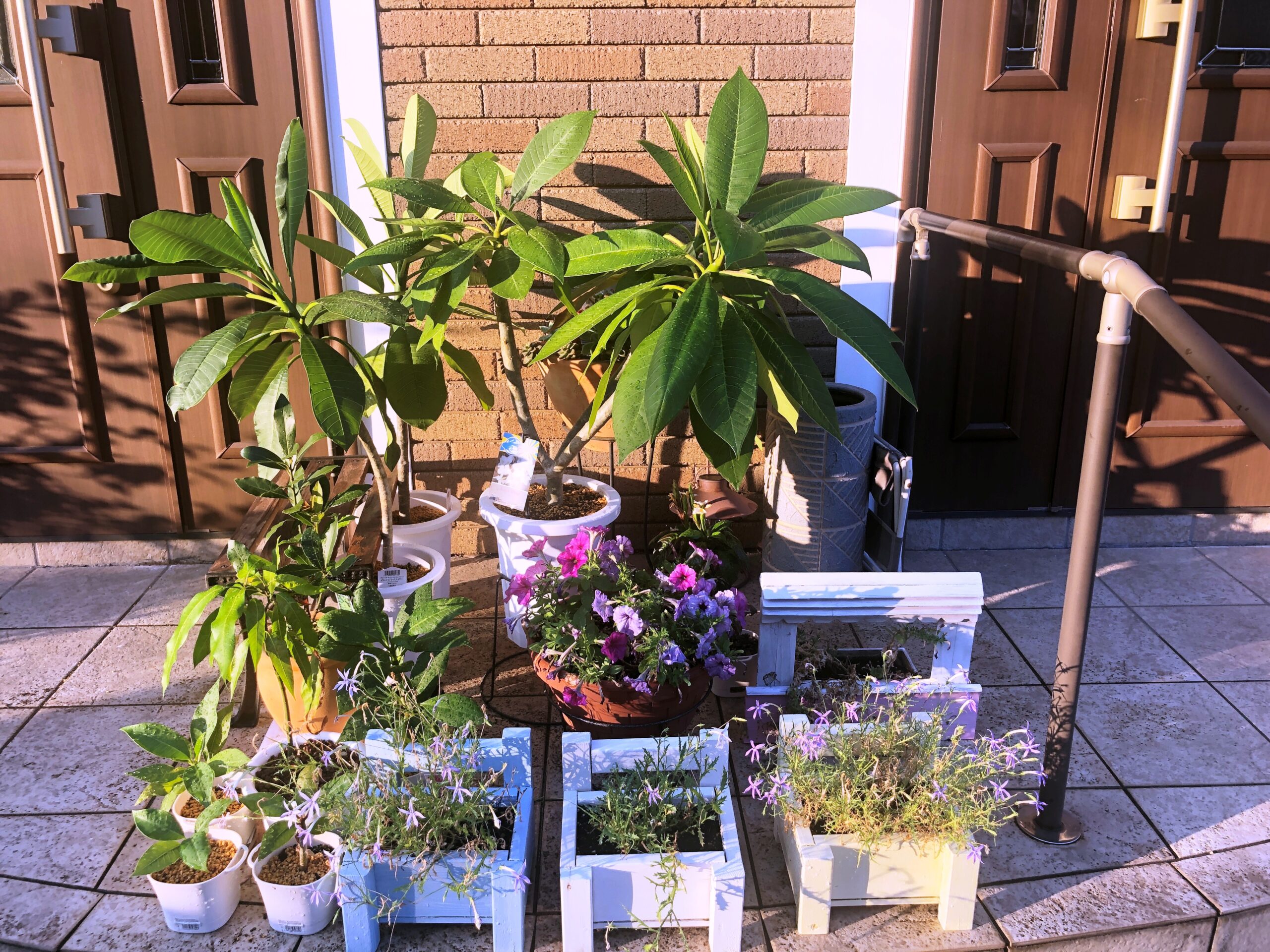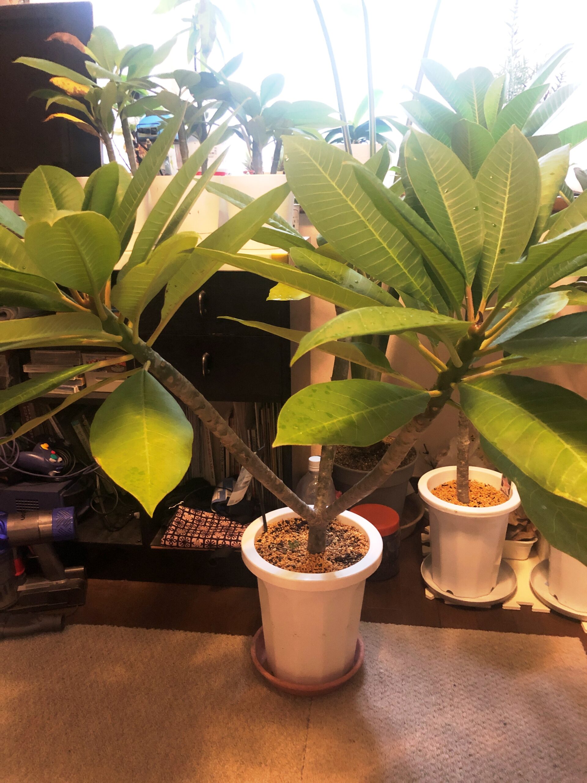 タネから育てたプルメリアの一部です。他の苗はサンルームで冬越しさせてみようと思います!