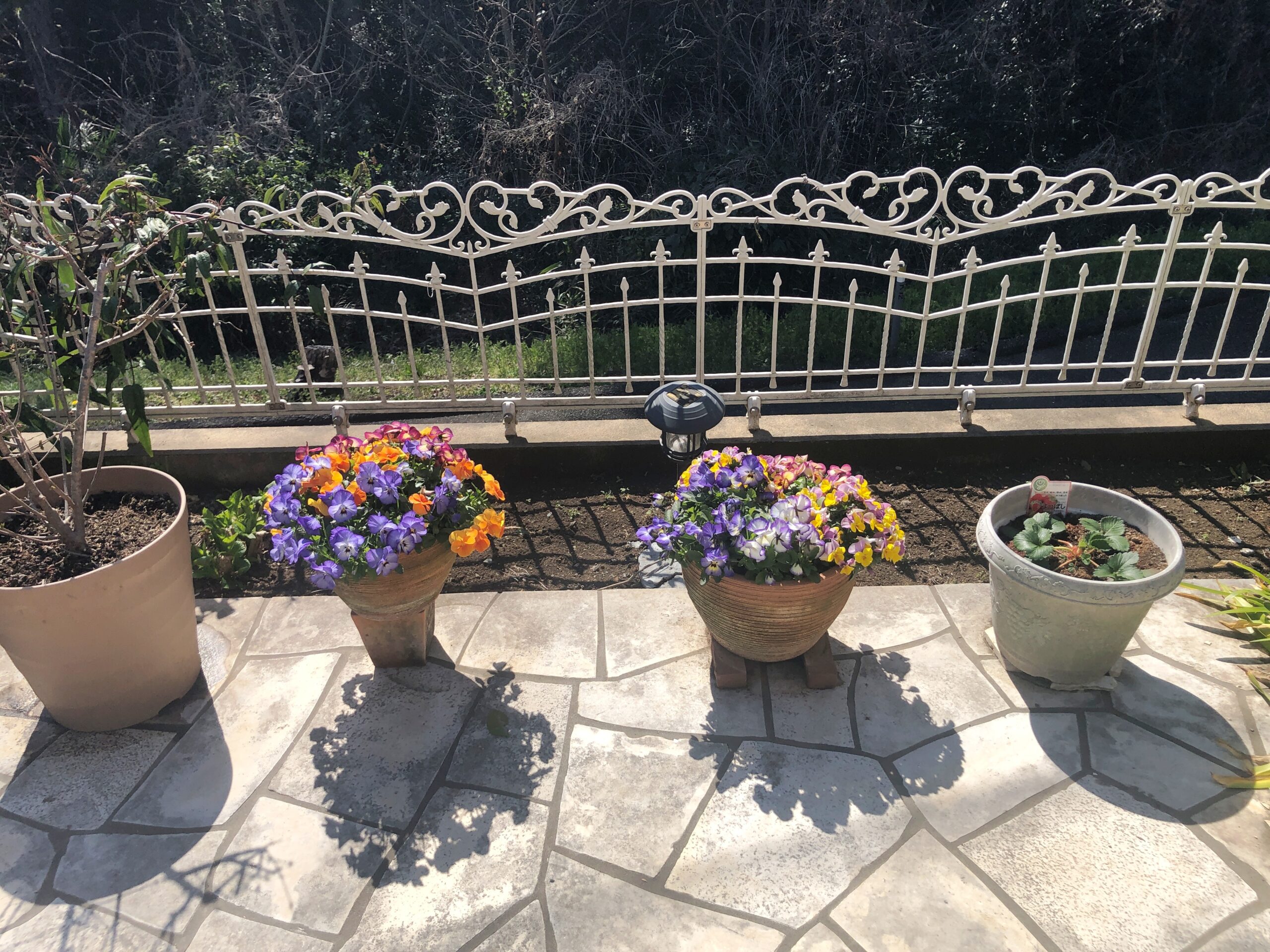 以前ご紹介しました、ひょうたん鉢の寄せ植えの隣で少し様子を見たいと思います!