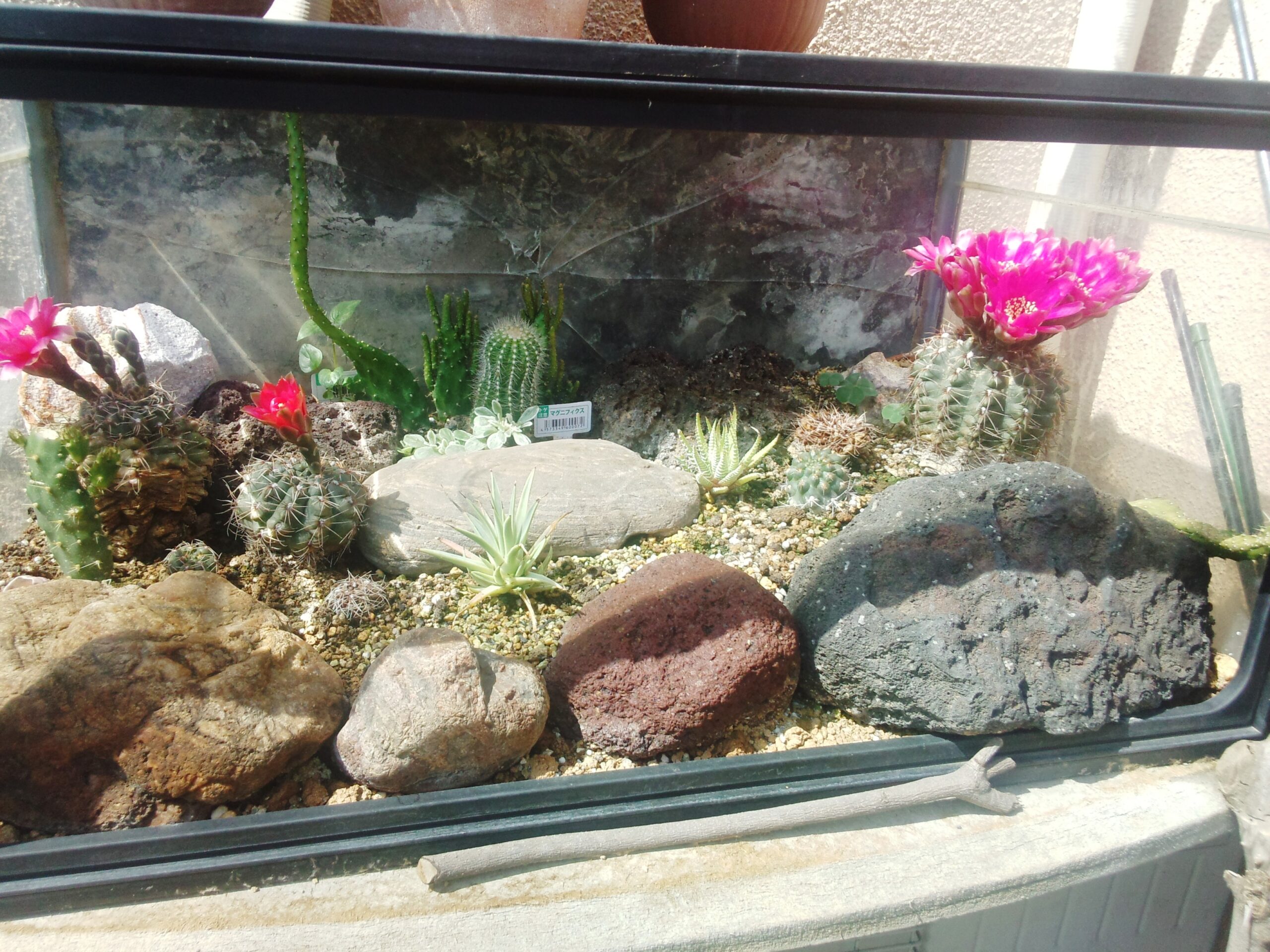伊豆シャボテン公園を思い出しながら、水槽の中に寄せ植えを造ってみました!