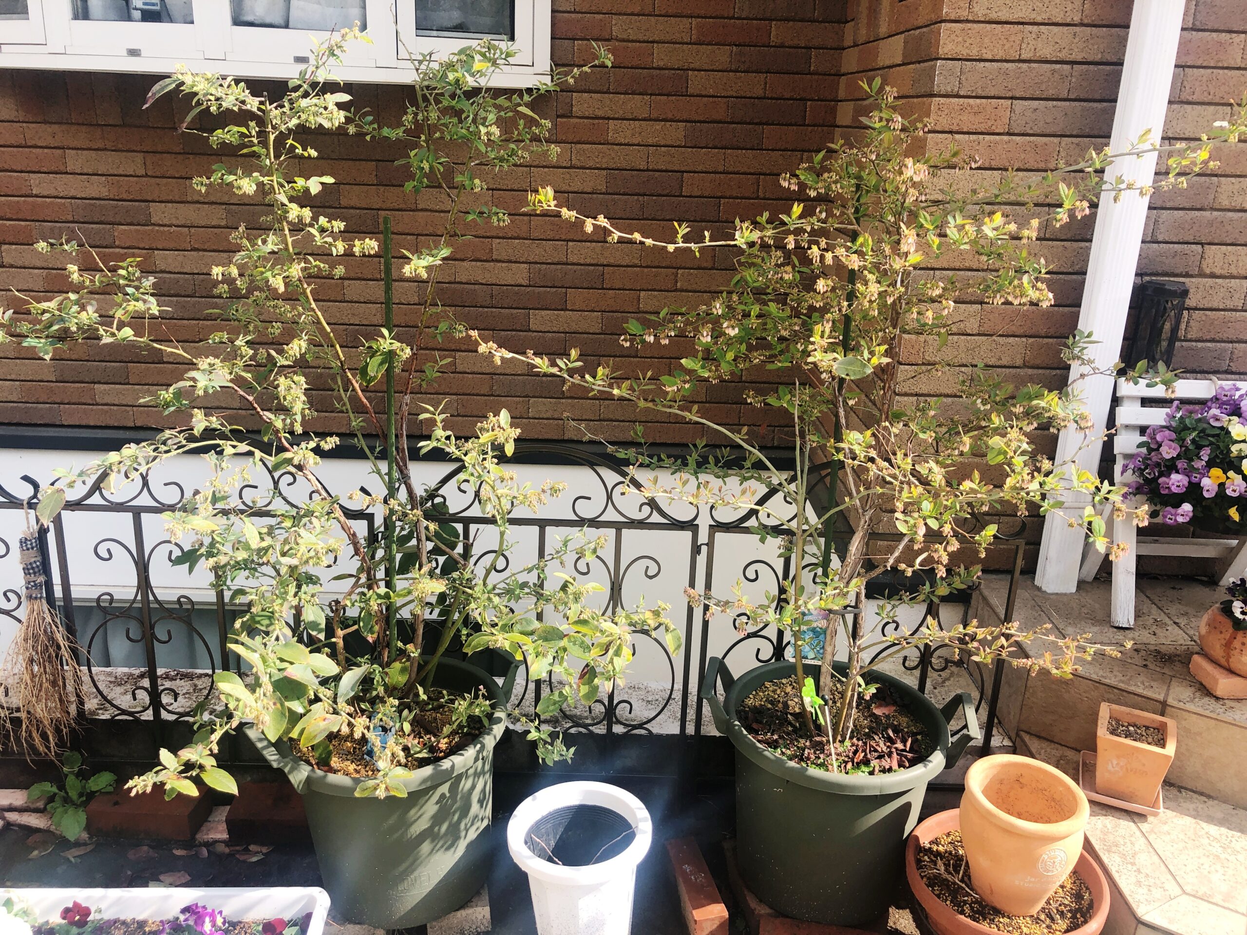 右がパウダーブルーで左がブライトウェルです!無事今年も花を咲かせました。3月にブルーベリー専用の肥料をたっぷり与えました。次回は実が無くなった頃に、2回目のお礼肥としてたっぷり占用肥料を与えます!