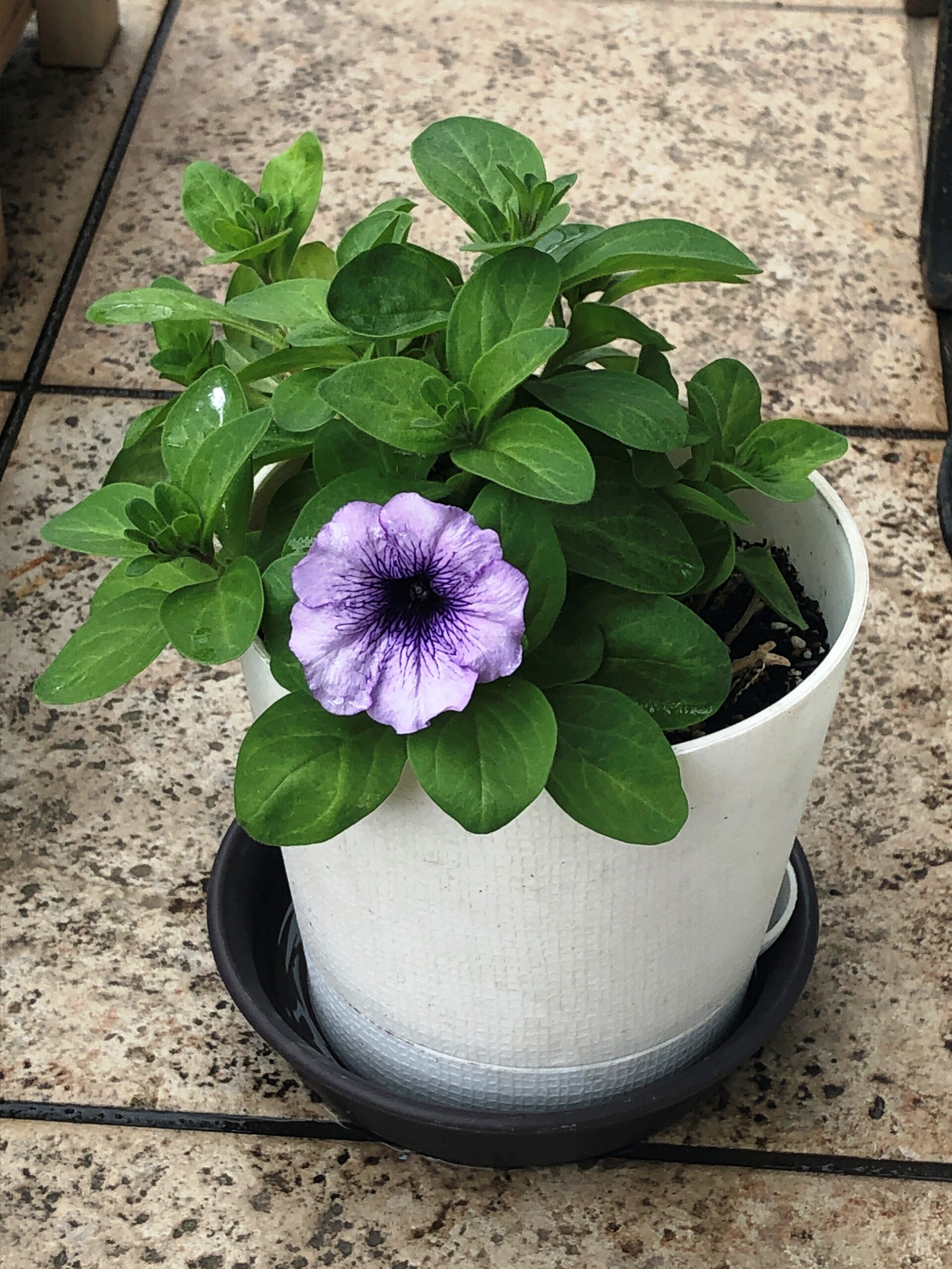 サンルームに居た紫のペチュニアも無事冬を越せました!