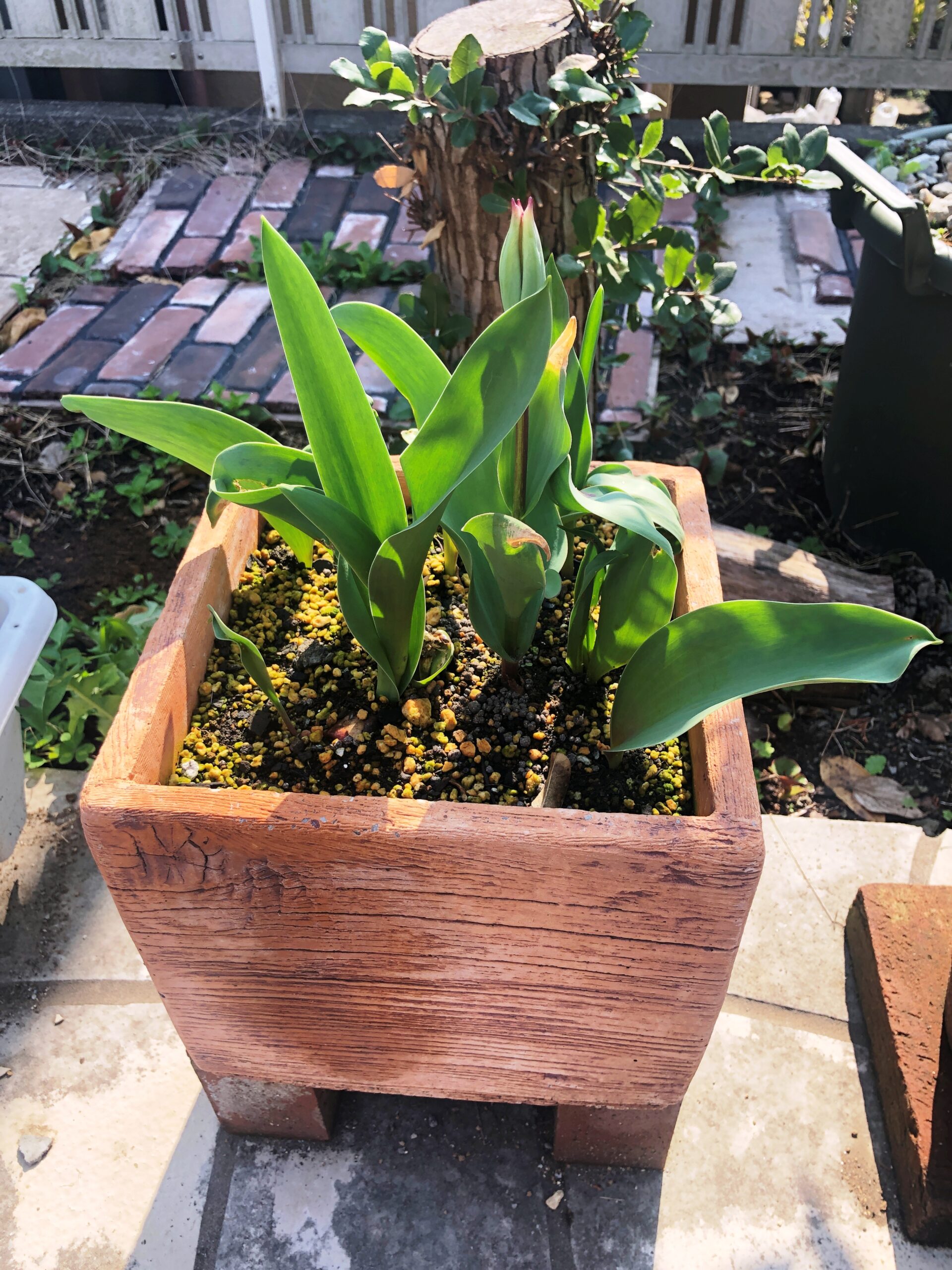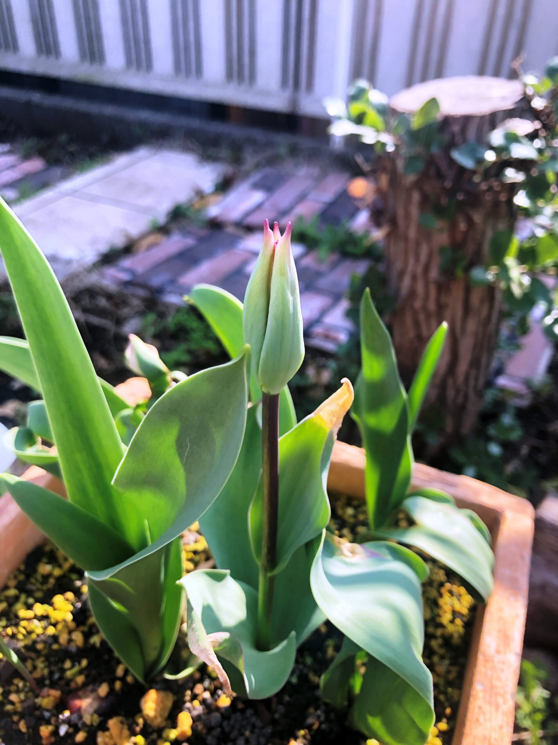 鉢植えのチューリップはまだつぼみの状態です!