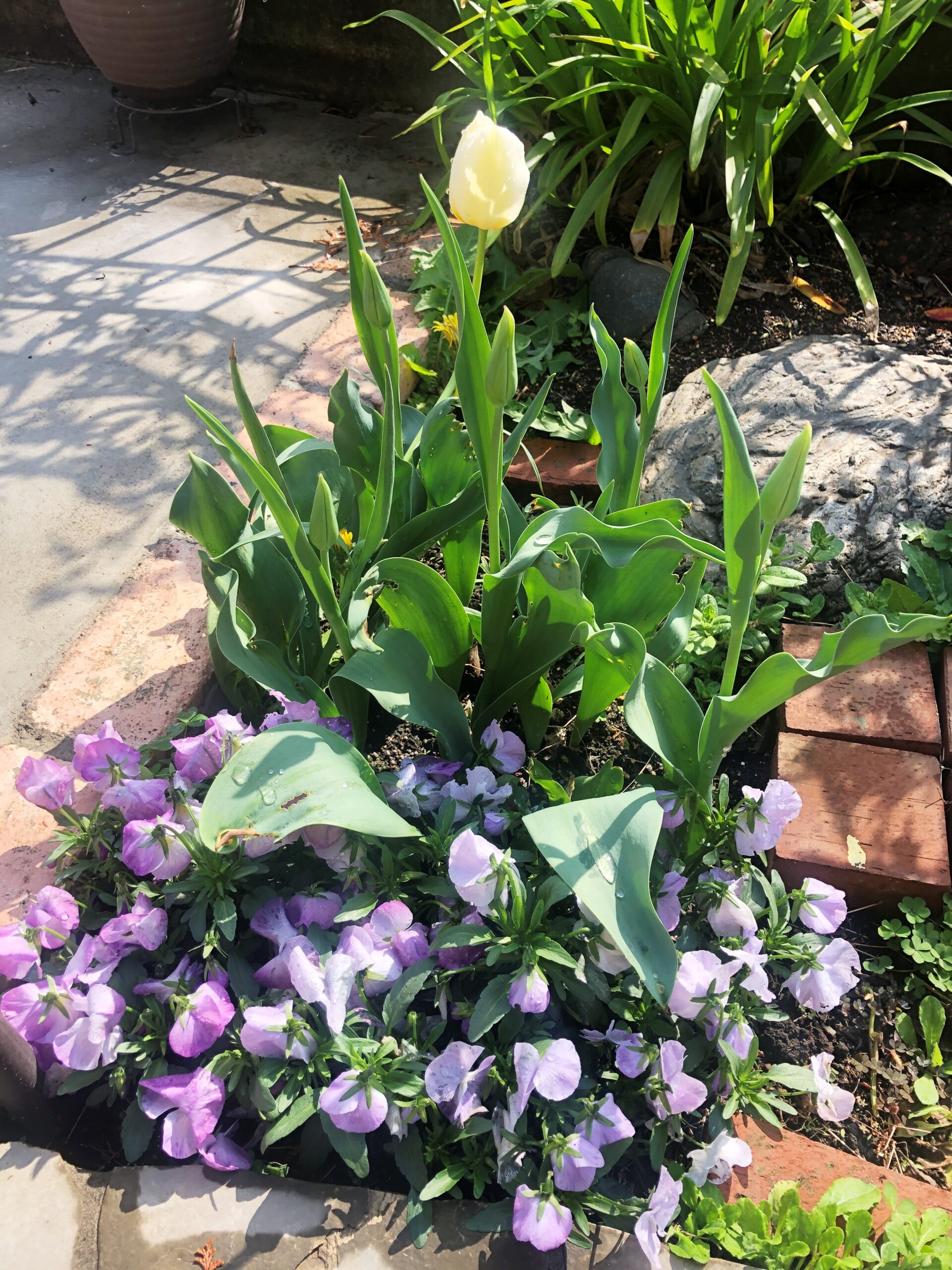 小さな花壇のチューリップは数日前までまだつぼみでした!