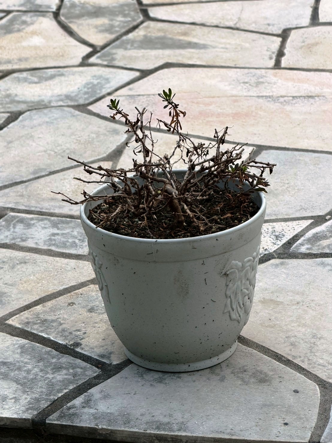 夏の間頑張って咲いてくれていたカリーです。冬越しの為小さ目の鉢に植え替えます。残りの土をたくさん集めて再利用します!・・・ふるいはかけません