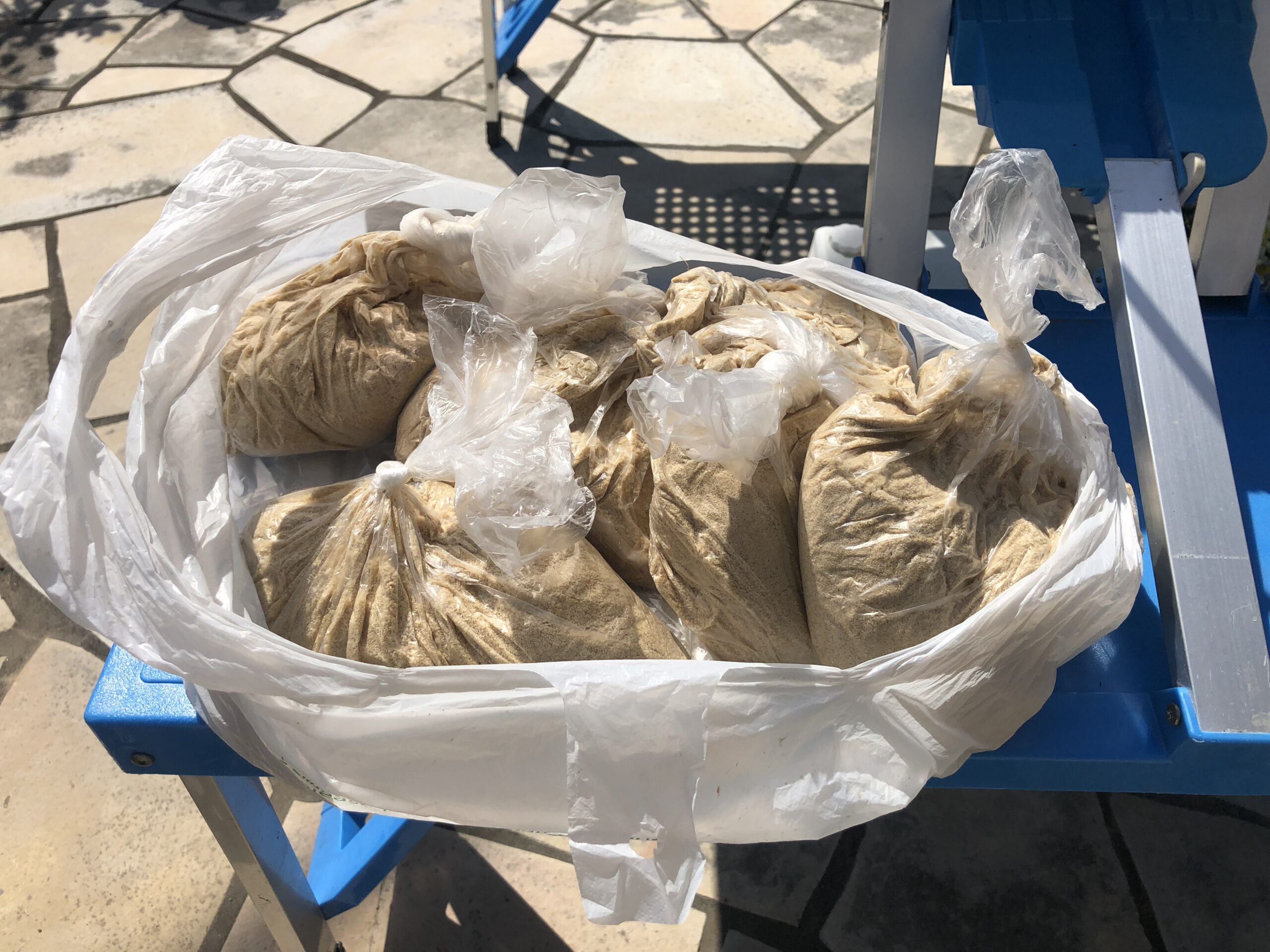 25Lの袋いっぱいの古い土に溶液をかけて数日間消毒しました!・・・最速2,3日でよいそう