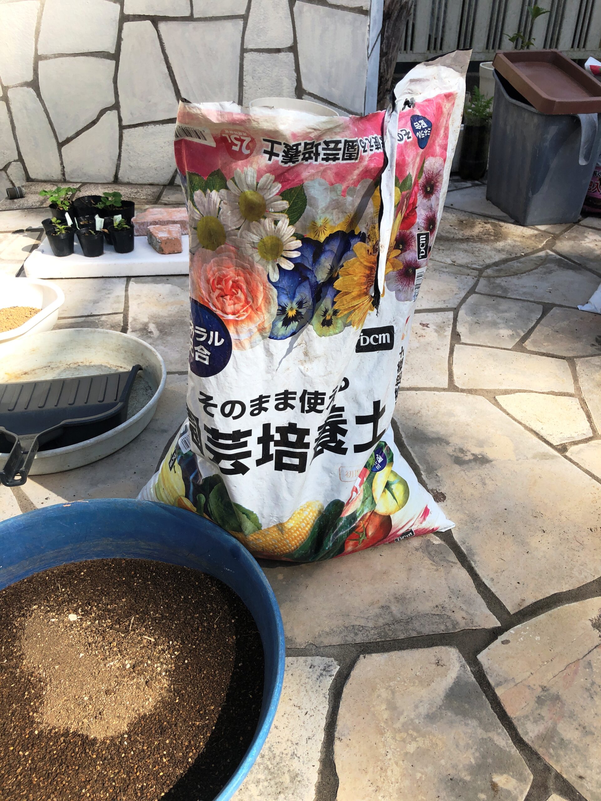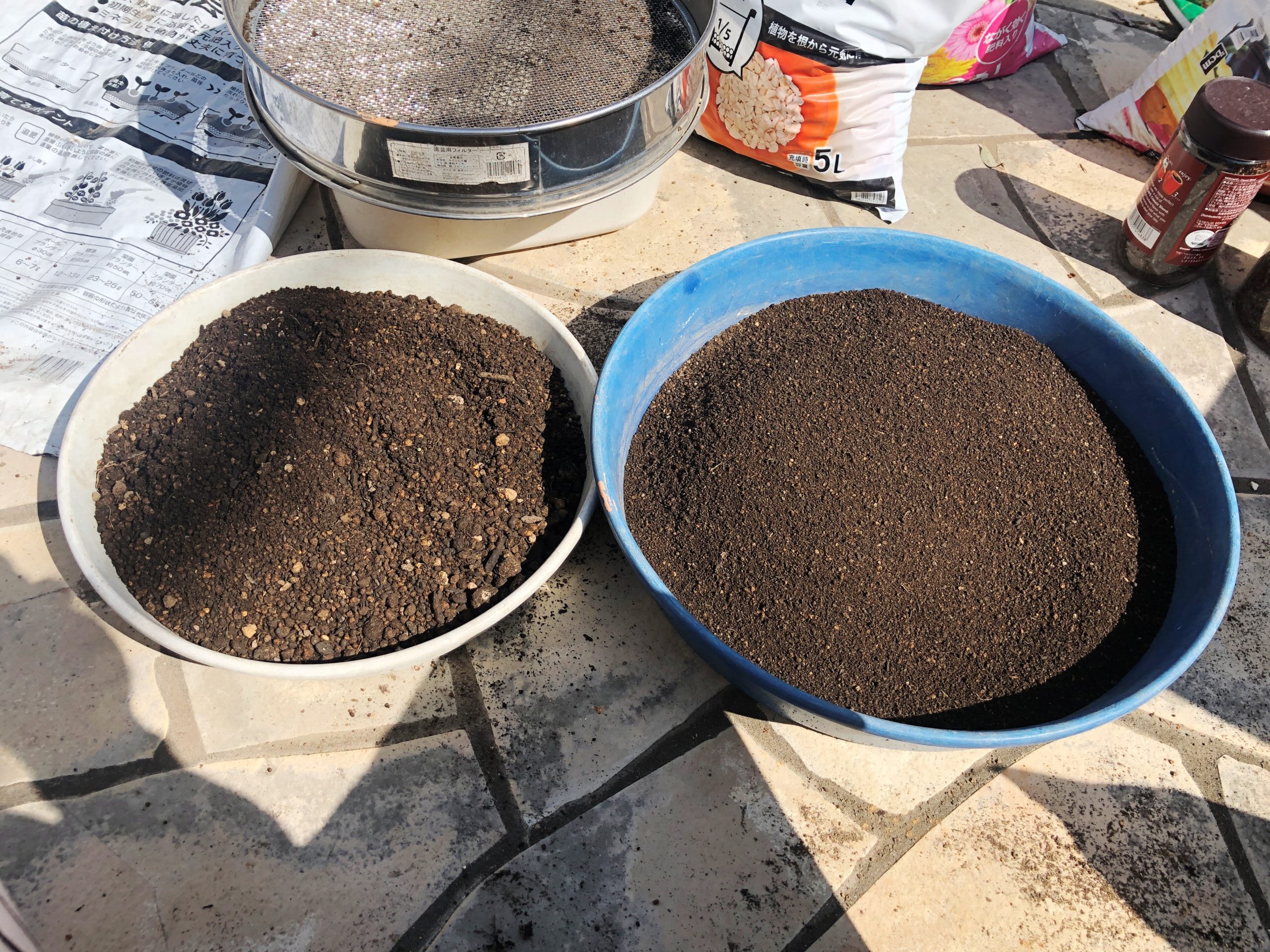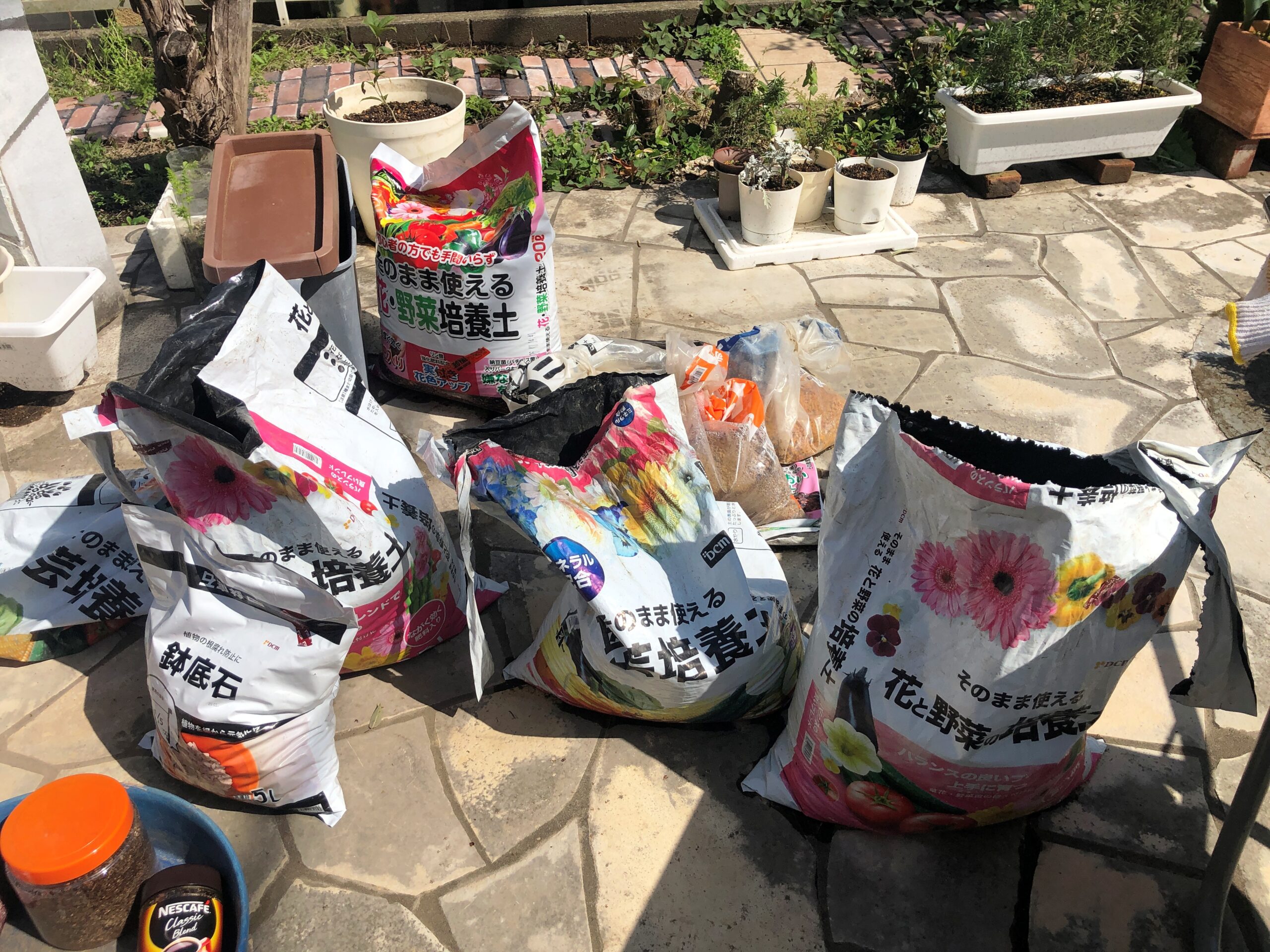 細かい土は袋に入れて保管し、eb-Aエコという土を団粒化する薬をかけてから再利用しようと思います!