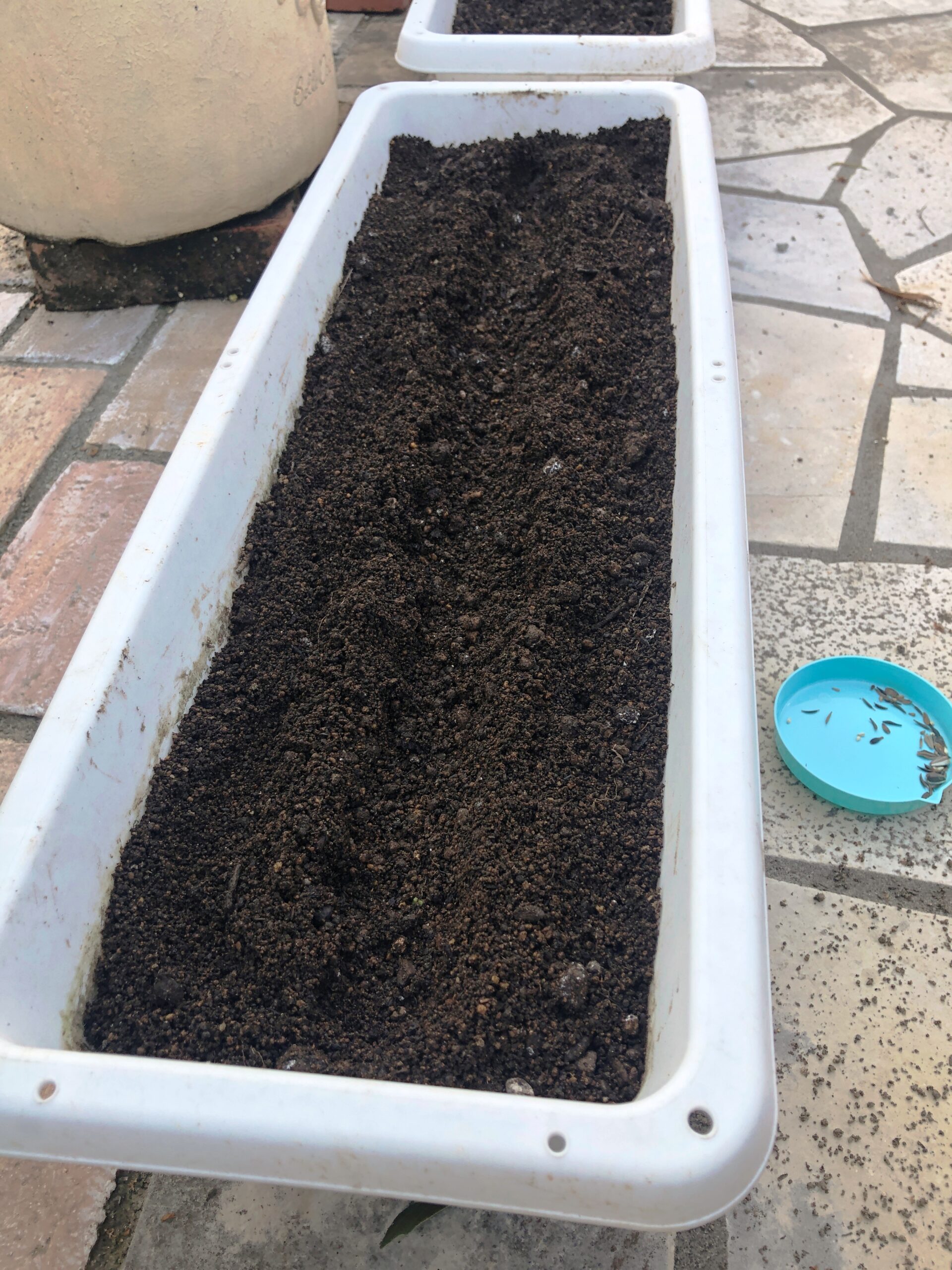 横長のプランターに筋まきしました!