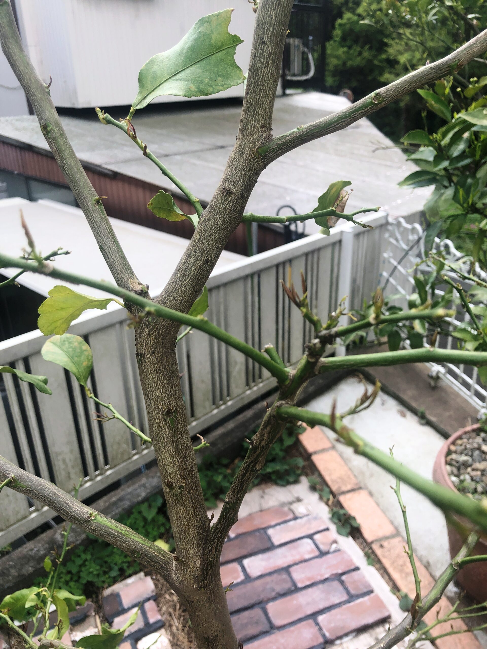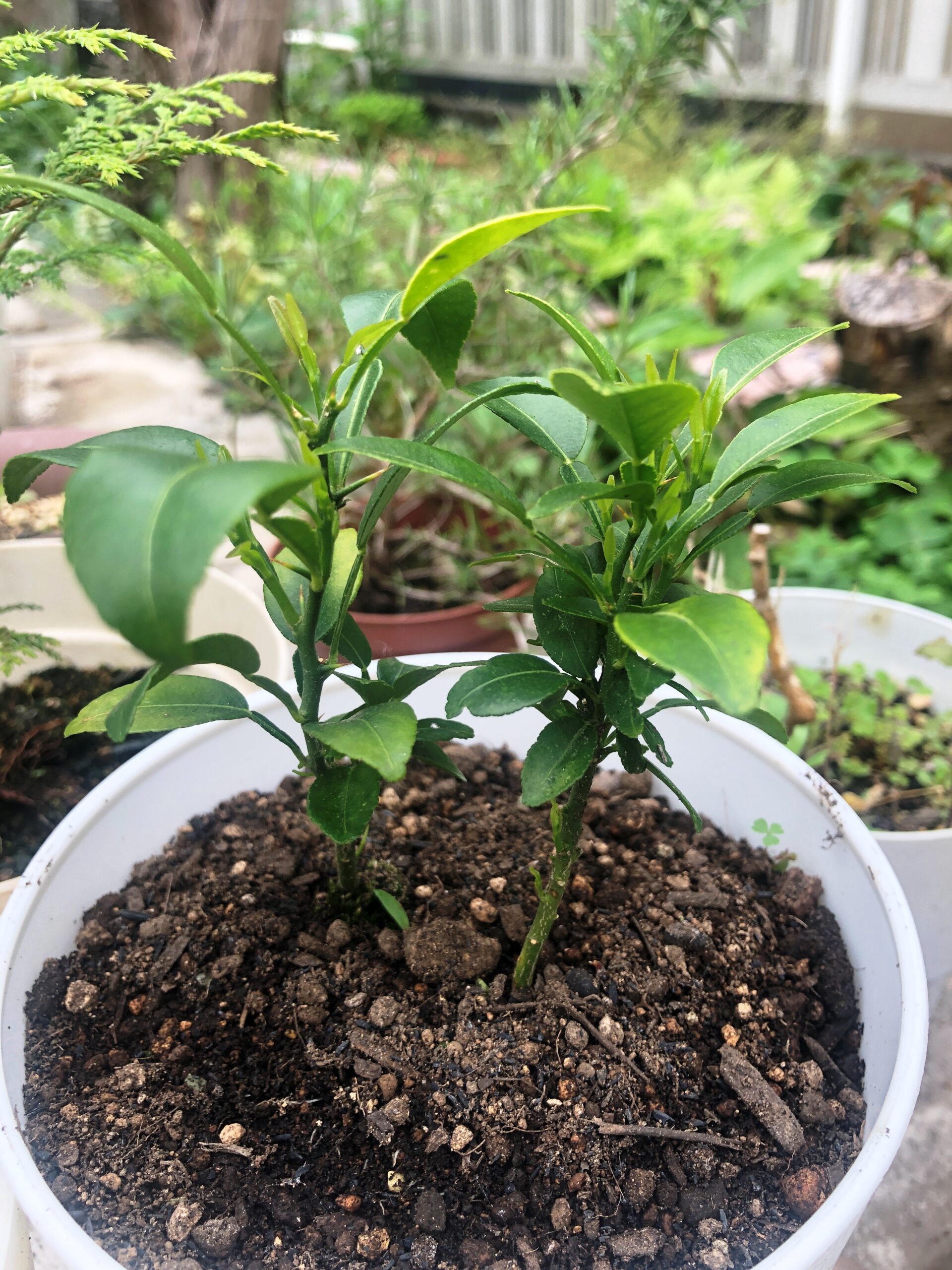 昨年タネを植えて育ったゆずです。何年先に実が生るか、とりあえず大きくしてみます!