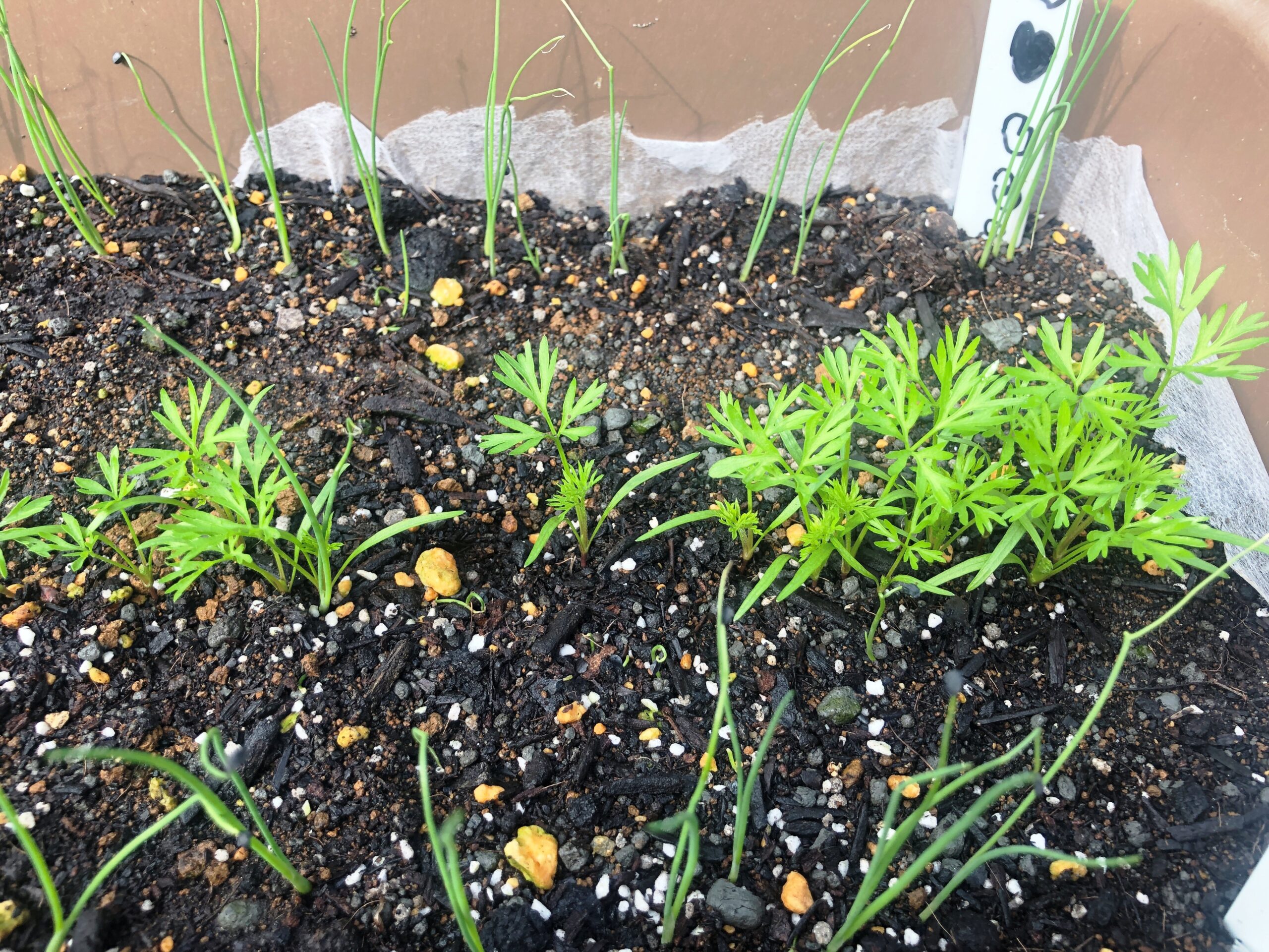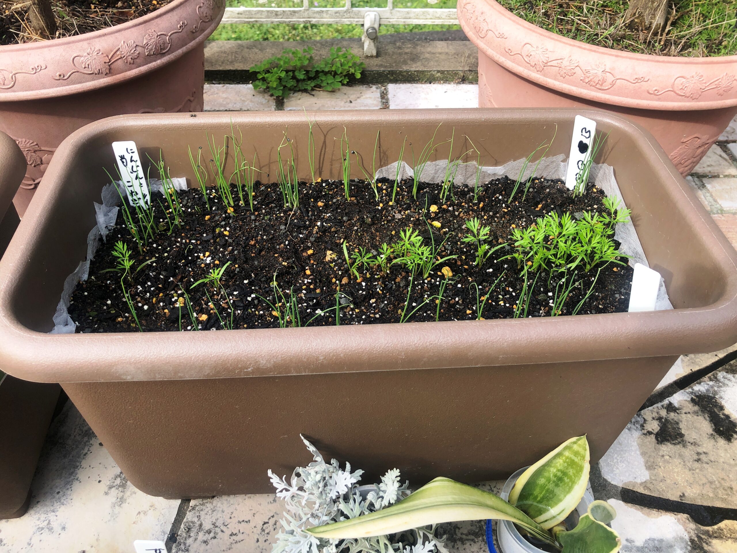 4月初旬にニンジンと小ねぎのタネを蒔きました。大分大きくなってきました!