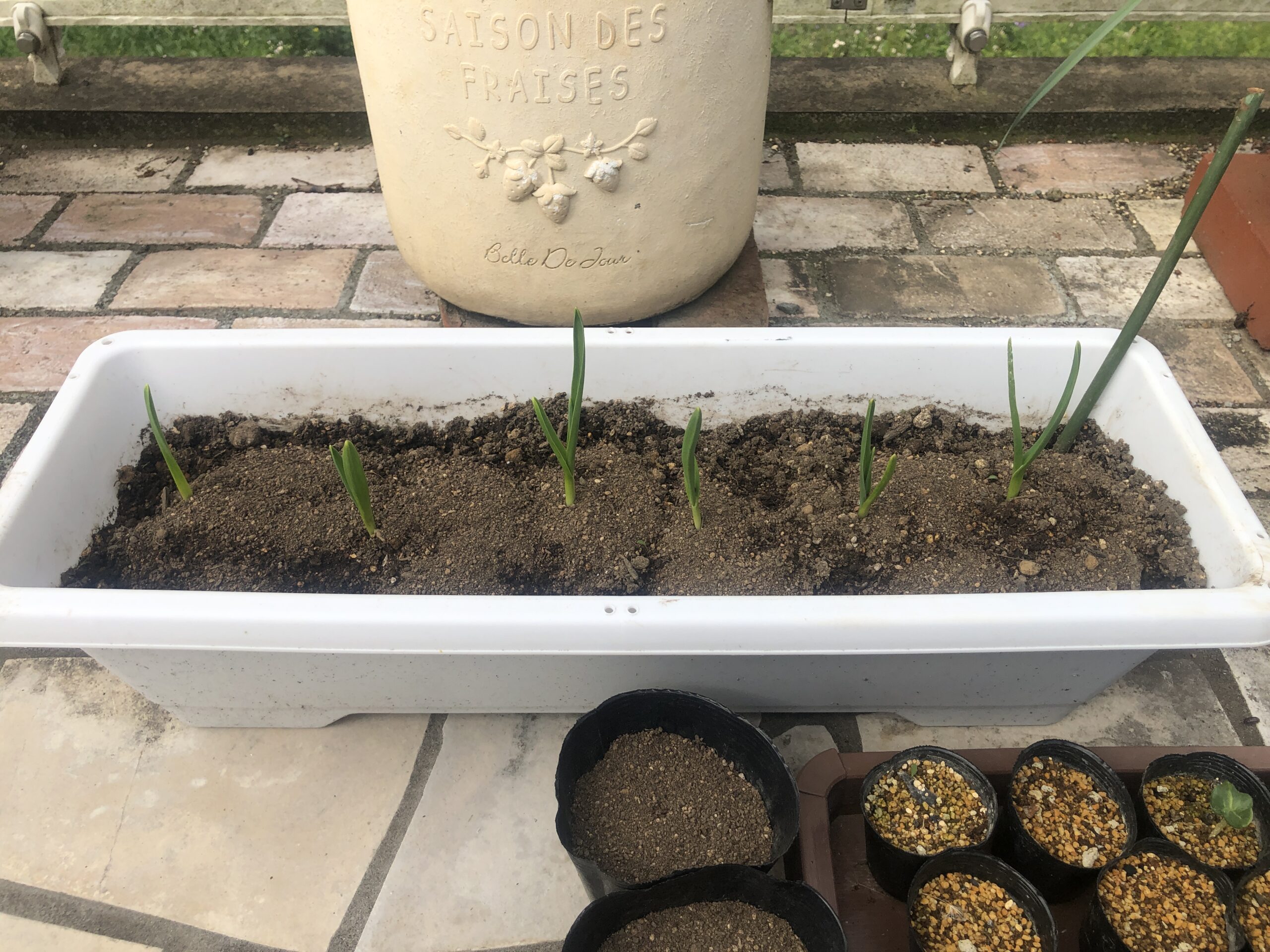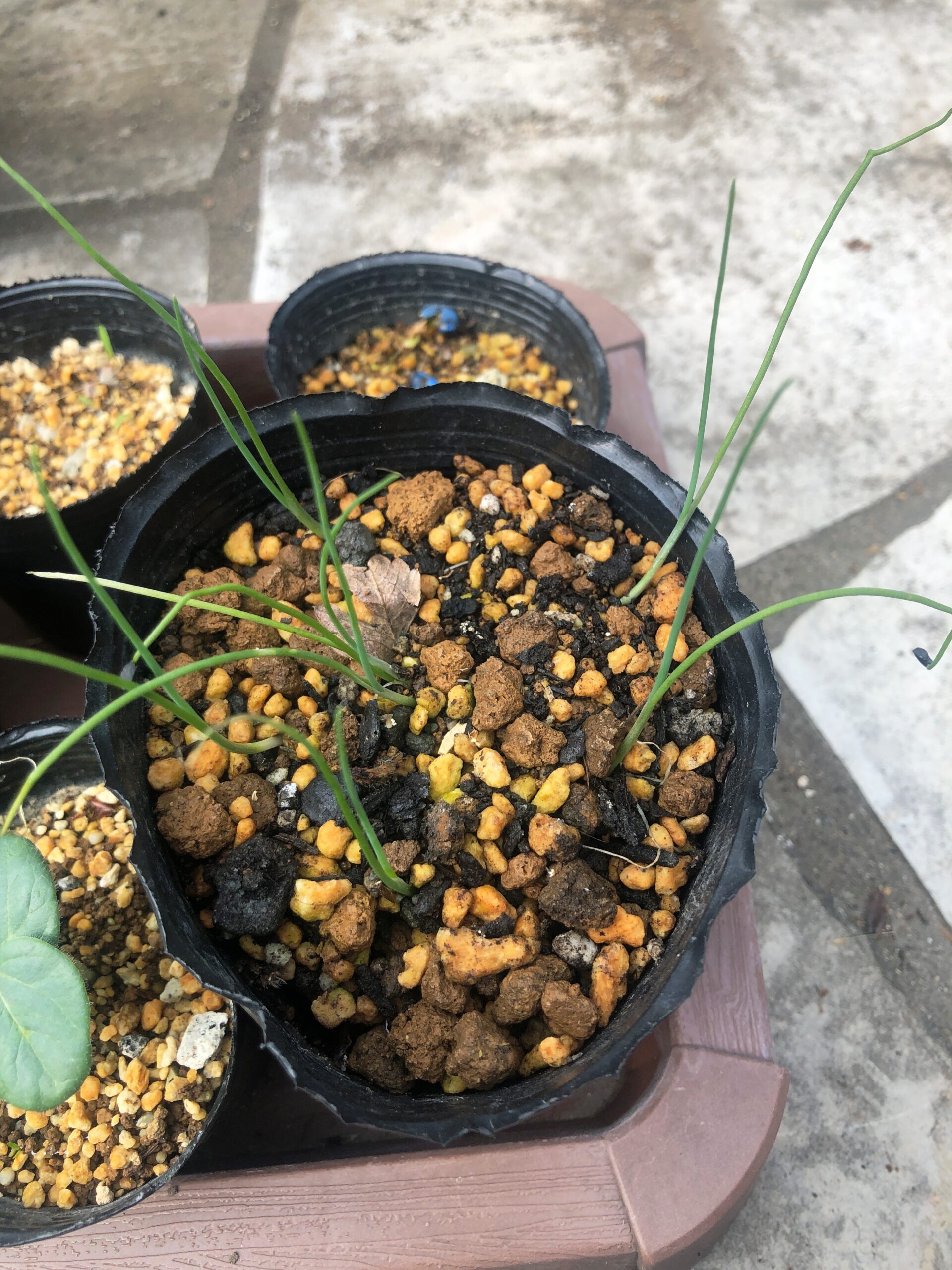 間引きした小ねぎをポットに植えてみました。元気に育ってくたらミニトマトのコンパニオンプランツとして植えようと思います!