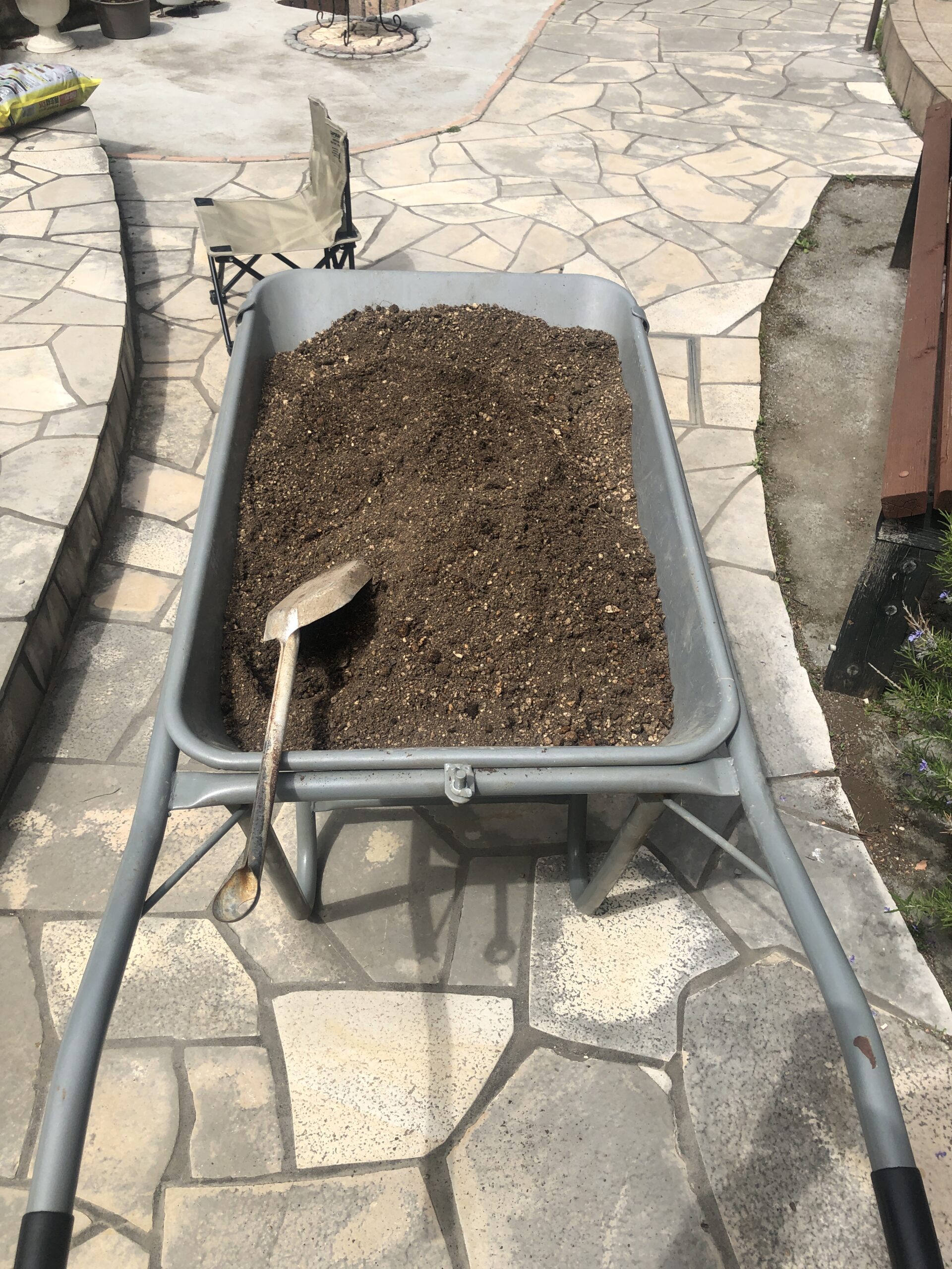 ふるいにかけた後、2割程度、再生材を混ぜ込みました。結構ふかふかの土になりました!