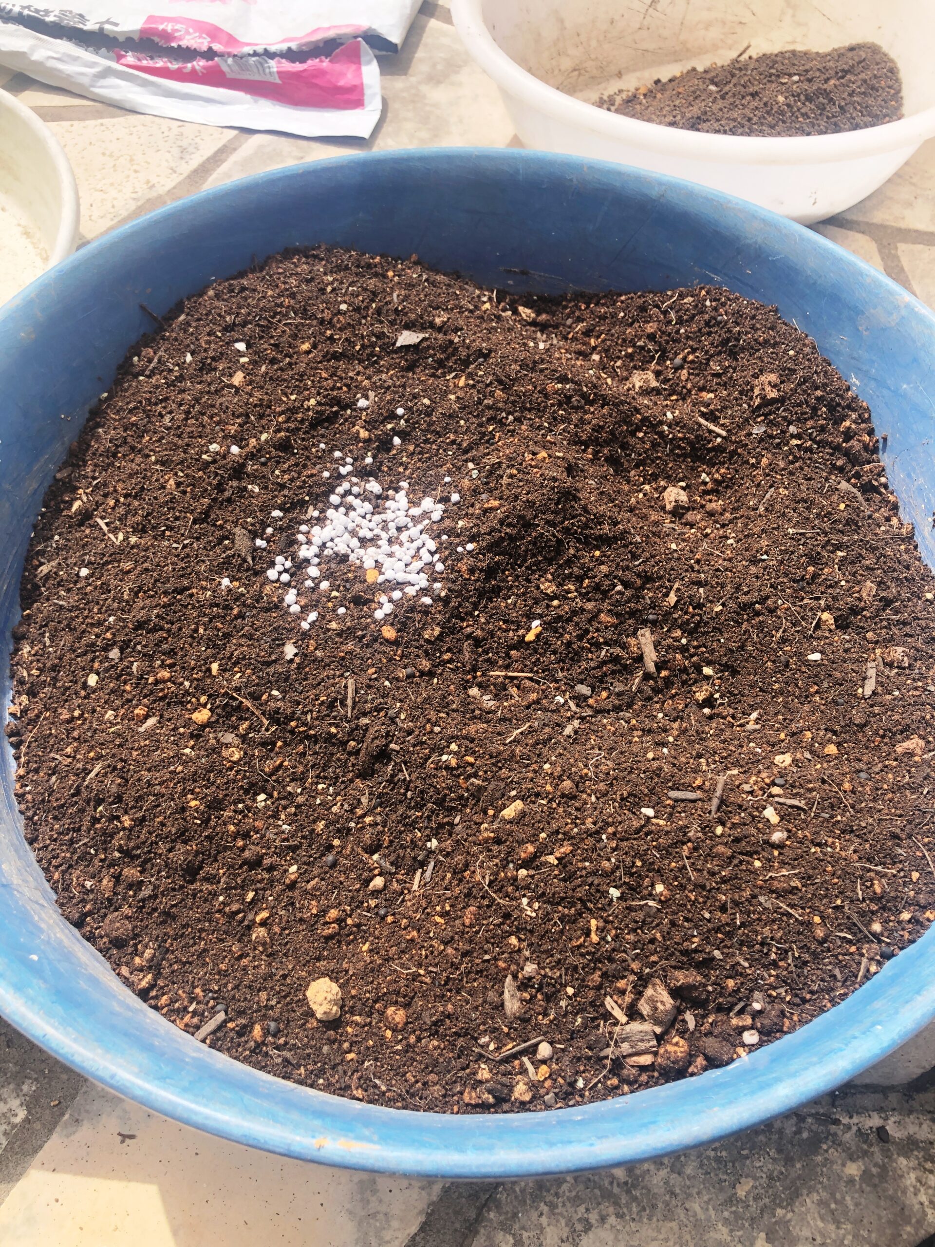 今年から使い始めた有機入り化成肥料を混ぜ込んでみました!